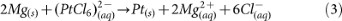 The similar replacement reaction was extended between Mg and H2PtCl6 to synthesize Pt, according to the following equation: