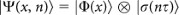 , with position |Φ〉 and spin |σ〉 components. The discrete position and time variables are indicated, respectively, by x and nτ → n.