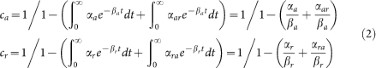 (equation 1, Method) which represent the instant probabilities of r → a and a → r transition occurrences given the previous realizations (history