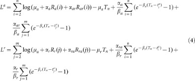 . Given the parametric form of the bivariate process in eq. 1, the set of parameters are estimated using the maximum likelihood estimation (MLE). The log-likelihood can be computed as the sum of the likelihood of each process: