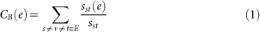 Where sst is the number of shortest paths from s to t and sst(e) is the number of shortest paths from s to t that pass through an edge e. The edge betweenness of each edge was computed using the Cytoscape plugin NetworkAnalyzer, where the betweenness is normalized by dividing by (M − 1)(M − 2), where M is the number of edges in the connected component that the edge belongs to.