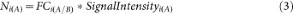 Where SignalIntensityi(A) represents the normalised signal intensity for the condition A and SignalIntensityi(B) represents the normalised signal intensity for the condition B.