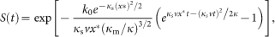as described by Hummer and Szabo27. Here, κs is the harmonic force constant scaled by kBT = β−1, ν is the retraction velocity of the cantilever, x* is the distance along the free energy surface from the well minimum to the energy at bond rupture or bond length, κm is the molecular spring constant of the bond, κ is the sum of κs and κm and D is an effective diffusion coefficient. S is the survival probability or the probability that the rupture has not occurred yet at time t and t* is the time of rupture. This probability density function was fit to each experimental adhesion force distribution by probing fit parameters using Monte Carlo optimization methods42,43,44.