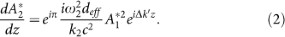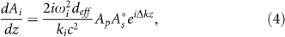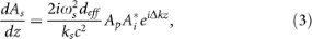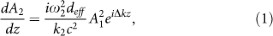 , where i = 1, 2 refers to FW and SH, respectively and where Ai(z) is the slowly varying amplitude (slow-varying envelope approximation), the wave equation can be expressed as21: