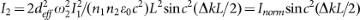 Note that Eq. 2 is the same as Eq. 1 except for an extra phase difference (Δφ = φ2 − 2φ1 = π) and a sign-flipped phase-mismatching vector (Δk' = −Δk). The complex conjugate fields