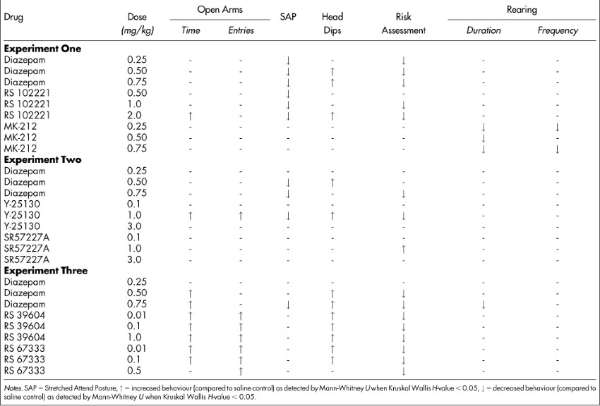 Table 5 Summary of significant findings across three experimental studies relative to saline controls