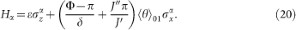 the effective potential in (11) can be reduced to a double well; for Φ = π, the two lowest levels of such double well are symmetric and antisymmetric superpositions of the states in the left and right wells respectively (See the Supplemental material). The effective Hamiltonian can be written as
