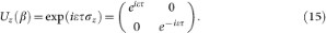 where 〈θ〉01 is the off-diagonal element of the phase-slip in the two-level system basis. It is easy to show that spin flip, Hadamard and phase gates can be realized by this Hamiltonian. For example, a phase gate can be realized by evolving the state through the unitary transformation Uz(β) (tuning the second term of Eq.(14) to zero by adjusting the imprinted flux)