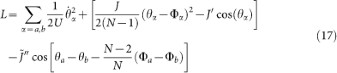 We observe that along each ring the phase slips imply twisted boundary conditions and therefore they can be localized to a specific site, say the N − 1-th. Following a similar procedure as employed above, the effective action reads