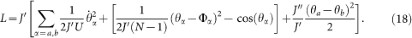where each Gα(τ) is given by the expression found above for the case of a single ring. In this case the phase dynamics is provided by the potential