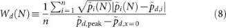 where the symbol 〈·〉N refers to the thermodynamic average for a system with N water molecules. UM quantifies the bimodality in QN(M). The isobaric value of UM shows a minimum at the temperature where QN(M) mostly deviates with respect to a symmetric distribution (Fig. 8). Minimum of UM converges to 2/3 in the thermodynamic limit away from a first order phase transition, while it approaches to a value <2/3 where the bimodality of QN(M) indicates the presence of phase coexistence.