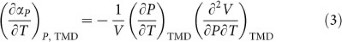 where the index “ED” denotes that the derivatives are taken along the locus of extrema in density. So, the slope ∂P/∂T of TMD is given by