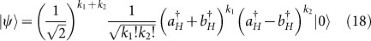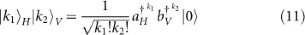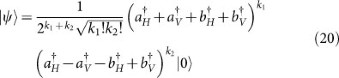 We consider the case that there are k1 incident photons in mode a and k2 incident photons in mode b of the beam-splitter. Each incident pulse of the beam-splitter has its own polarization and is indicated by a subscript. In general, we consider the state