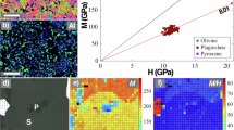 The polished sections of Chelyabinsk meteorite studied here consist of host-rock and pervasive shock-melt veins. The host-rock shows a typical equilibrated chondrite texture (Fig. 1a). Major constituents of the host-rock are olivine (Fo71Fa29), enstatite (En74Fs24Wo2), diopside (En46Fs9Wo45), albitic feldspar (Ab84An11Or5), Fe-Ni metal and troilite (Supplementary Table S1). Accessory minerals are chromite, ilmenite and Cl-apatite. Outlines of chondrules can be barely recognized and matrix is well recrystallized. Chemical compositions of olivine and pyroxene are almost homogeneous and in the range of LL chondrites12. Feldspar has a grain size up to several tens of microns in diameter. Many shock-induced irregular fractures are observed in olivine, pyroxene and feldspar. Planar fractures are also present in olivine and pyroxene. Feldspar is partly amorphous. These features suggest that this meteorite is an LL5 ordinary chondrite with the shock stage of S4 (moderately shocked) as reported by previous studies1,3,6,12,13,14.