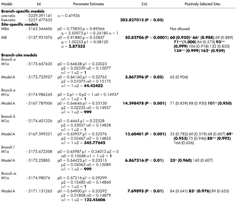 Table 3 CODEML analyses of the selective pattern for RNASE1 genes in Musteloidea