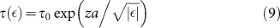at which the “reflexes” of the order parameter of the system, quantified by the relaxation time τ, are too slow for its state to remain in approximate equilibrium with its momentary Hamiltonian (or free energy) controlled from the outside by the experimenter plays a key role. It is obtained from the equation3,4,5:
