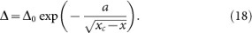 Here x = J/U is a dimensionless ratio of the hopping rate J to the interaction strength U. Using Ref. 58, it is possible to estimate: xc = 0.26, Δ0 = 0.2 J and a = 0.3.