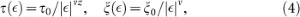 Above, ν and z are the spatial and dynamical critical exponents that characterize the universality class of the transition, while τ0 and ξ0 are dimensionful parameters determined by the microphysics. This leads to the characteristic scale