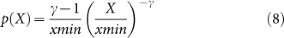 Equation (5) indicates that under the condition that a ≠ 0 or b ≠ 0 and when c does not constraint the distribution of X, i.e., is proper, the network is scale-free and the exponent of the degree distribution obeys equation (7).