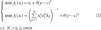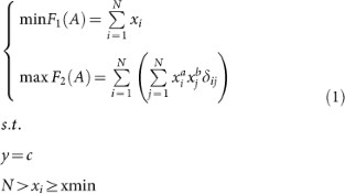 Equation (3) has an analytic solution of a Pareto front26, which can be rewritten as equation (4), when y = c, where c does not constraint the random variable X through the validation of the network topology structure.