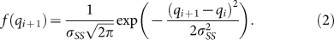 for the MovieLens and the Amazon data respectively. Thus, the transition probability distribution of the Markovian process should be a Gaussian distribution with expectation μ = qi and standard deviation σSS. Then, the quality of the user's next selection qi+1 comes from this Gaussian distribution, i.e. the probability of the next object's quality being qi+1 is given by