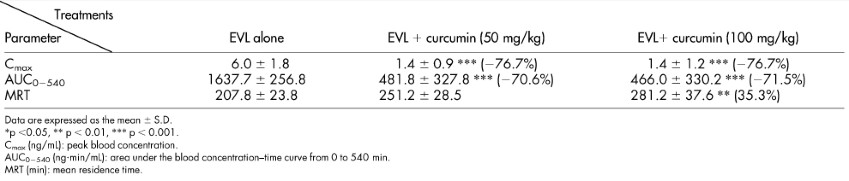 Table 1 Pharmacokinetic parameters of EVL in rats after various treatments