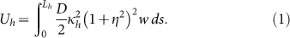 Ignoring the interface regions, the ribbon energy density (Uh + Us)/(wL) can be expressed as a functional of the form f(lh, ρh, λ) which depends on