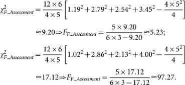 Note that (2) is distributed according to the F-distribution with k-1 and (k-1)(N-1) degrees of freedom45. Hence, we can reject the null hypothesis with the critical level α if FF is greater than the corresponding critical value.