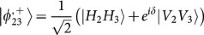 Let us focus on the third term. The |ψ+〉14 state will be detected by the Bell state analyzer and thus projects the state in ch2 and ch3 to |ϕ+〉23 state.