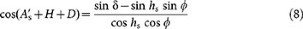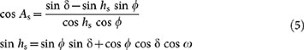 Where δ is the solar declination, ϕ is the geographic latitude and ω is the solar hour angle.