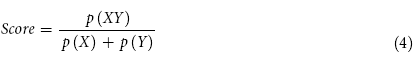 Score in Eq. (4) for co-occurrence based relation between two entities is calculated using the mutual information62 (MI). MI relates the joint probability of two items occurring [p(X,Y)] with respect to the probability of independent occurrence [p(X) . p(Y)]. The higher the MI value, the greater is the confidence in hypothesizing the co-occurrence.