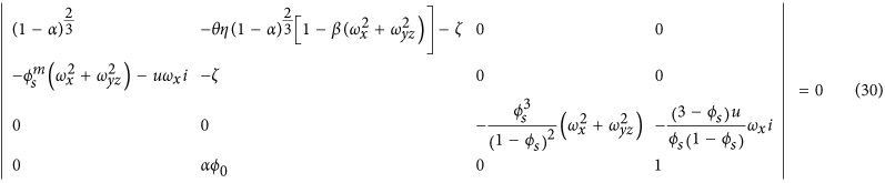 where θ = f(Q0)/RT; η = f′(Q0)Q0/f(Q0) < 0; α = Q0Vm/φ0; β = B/L2; φs = φ0(1–α); ωyz is the wave number along the direction perpendicular to the water flow
