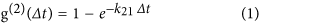 The coincident photon counts at the two detectors were recorded as a function of ∆t between simultaneous photon detection events. A dip in the coincident counts with the decrease in the delay time characterizes a single photon emitter. The single photon characteristics of the recorded data were studied using the intensity autocorrelation function g(2) (∆t). For an ideal single photon emitter, the g(2) (∆t) function for the two outputs is g(2) (0) = 0. For all ∆t > τ, g(2) (∆t) > g(2) (0), because after emission of a single photon, the emitter needs to be excited again before a second photon is emitted. Here ∆t = τ denotes the lifetime of the emitter32.