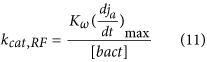 The value of kcat,RF can be estimated in a similar time scale (~15 min for the bacteria to reach rmax) (Fig. 4) with F. prausnitzii suspensions whose concentration varies ~3 orders of magnitude, showing large range of [bact] for accurate kcat detection with the RDE method as well as suggesting a high sensitivity. Kinetics of less concentrated suspensions should be accessible with longer time of monitoring in order to obtain a sufficiently accurate slope value.