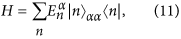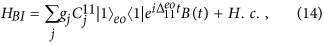 is the eigen-energy of the n-th eigenstate |n〉α of the system in the even (α = e) and odd (α = o) parities. In the interaction picture, the Hamiltonian HBI can be written in terms of the eigenstate |n〉α as
