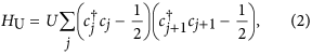 are the Pauli spin operators at site j. The Hamiltonian H = H1D + HU of the system can be recast as