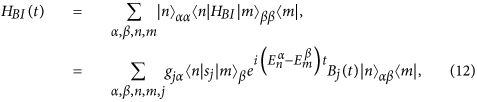 where H, HB and HBI are the Hamiltonians of the system, bath and system-bath interactions, respectively. It is convenient to express the Hamiltonian Ht in terms of the system’s eigenstates, i.e.,