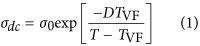 Figure 4b shows the dependence of ρdc(300 K) on m and Tg as predicted on the basis of the VFT law. To calculate this colour-coded plane, we used eq. (2) with D replaced by 590/(m-16) (ref. 12). When assuming τσ(Tg) = 100 s and τ0 = 10−14 s, the latter being a typical inverse attempt frequency, one arrives at:
