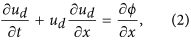 The spatial coordinate x, the time t, the velocity ud and the electrostatic potential ϕ are normalized by the Debye length λD = (Teff/4πZdnd0e2)1/2, the inverse of effective dust plasma frequency