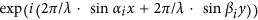 where x is the horizontal coordinate, y is the vertical coordinate, αi is the diffraction angle of horizontal direction and βi is the diffraction angle of vertical direction. By controlling the diffraction angle or the period of the blazed phase grating, one can easily steer the propagation direction of the converted or back-converted beam. The specific complex phase mask for multi-OAM (de)multiplexing and steering can be constructed by adding multiple conventional fork phase masks with different αi, βi and li together as follows