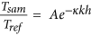 , where Tref and Tsam are the maximum transmittances through the nano-antenna without and with the cladding; A is the transmittance ratio at the air–cladding boundary; κ is the imaginary part of the refractive index of the cladding; k = 2π/λ is the incidence momentum; and h is the cladding thickness, proportional to the molecular concentration. In our simple model, we also assumed that higher concentration means the thicker cladding that yields stronger frequency shift and we can find that our model provides similar frequency shift behavior as shown in Fig. 3(a,b).