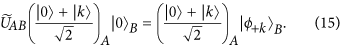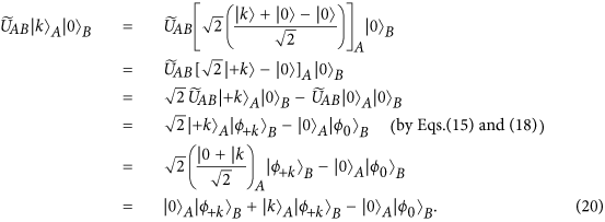 . Since the two possible states are obviously orthogonal and further Alice knows the value of k, she is able to completely distinguish them by a von Neumann measurement. If Alice finds a cheat of Bob, she will terminate this protocol; otherwise continue to the next step.