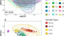 Copy numbers for each standard curve were calculated based on the following equation: (NL × A × 10−9)/(660 × n), where NL was the Avogadro constant (6.02 × 1023), A was the molecular weight of DNA molecules (ng) and n was the length of amplicon (bp). The copy number of the 16S rRNA genes for total bacteria per gram of sample was calculated using the following equation, as previously reported15: (QM × C × DV)/(S × W), where QM was the quantitative mean of the copy number, C was the DNA concentration of each sample (ng.μL−1), DV was the dilution volume of extracted DNA (μL), S was the DNA amount subjected to analysis (ng) and W was the sample weight subjected to DNA extraction (g).