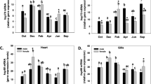 The 226-day experiment was divided into three parts. During the initial 40-d acclimatization period, the temperature was decreased from 25 to 3 °C. In the second part, winter lentic conditions were simulated by maintaining temperature at 2–3 °C for 90 days. During the final two months spring conditions were simulated by gradually increasing temperature from 2–3 °C to 10 °C. In the first three months crayfish were checked once per week because of the predicted high mortality. After this period, the animals were checked each 14 days till the end of the experiment. In order to maintain water quality, water was changed by tempered tap water during the controls. Water quality parameters of water before exchange (n = 2) were as follows: ANC4.5 (acid neutralization capacity) = 1.0 ± 0.1 mmol·l−1; ammonia nitrogen 0.2 ± 0.0 mg·l−1; nitrites < 5.00 mg·l−1; nitrates 0.03 ± 0.0 mg·l−1; calcium 24.4 ± 1.9 mg·l−1; phosphorus 0.1 ± 0.0 mg·l−1; magnesium 2.4 ± 0.2 mg·l−1.
