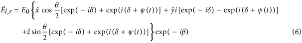 To obtain a UP light, avoiding light diffusion and preserving Bragg reflection, we exploit the interference of orthogonally polarized Gaussian laser beams40,41,42,43 (see Fig. 8): we tested the interference of two linear polarized s and p beams, as well as two opposite circularly polarized (RCP and LCP) beams of equal intensity. In such interference light fields, no intensity modulation is expected in the interference region, but only polarization patterns as the ones reported in Fig. 8a, whose longitudinal extension depends on the crossing angle between the beams. A random phase shift ψ(t) between the interfering beams (Fig. 8b) has been introduced to move the polarization patterns, obtaining a light field whose polarization state varies both temporally and spatially.