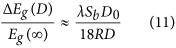 where μ0 denotes a pre-exponential constant. The activation energy for electrical migration is Ea = Ec − EF with Ec and EF being the conduction-band energy and the Fermi energy. In many semiconductors, EF is near mid-gap and thus Ea ≈ Eg/238. If the change of Eg is supposed to be proportional to the change of Ea, there is ΔEg(D)/Eg(∞) = |ΔEa(D)/Ea(∞)| where Δ denotes the change. Assuming that the electrical conductivity at the melting temperature is the same, independent of the melting temperature and therefore independent of the size, one can obtain the expression
