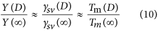 Although the nanocrystal has lattice contraction induced by the large surface-to-volume ratio, ab initio density functional investigations of the atomic structure of GaN nanocrystals with diameters ranging from 2.28 to 1.1 nm found that the contraction of Ga-N bond length at the surface is only 0.7–0.9% in comparison with the bulk20. Considering that the Y(D) depression reaches about 40% when the cross-sectional size of square nanowires is reduced to 1 nm23, we can concluded that the contribution of h(D) on Y(D) is negligible in this case as a first order approximation to simplify the derivations and calculations. On the other hand, the surface energy denotes the bond energy difference between surface atoms and interior ones while the melting temperature is also directly proportional to the bond strength, the size dependence of the surface energy has thus been deduced to be the same as that of the melting temperature41. Combining the above discussions, we can have