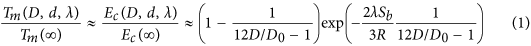 where Ec, R and Sb are the cohesive energy, ideal gas constant and bulk solid-vapor transition entropy. D0 = 2(3 − d)h is a critical size where all atoms of crystal are located on its surface with d and h being the dimensionality and atomic diameter or the nearest spacing34. The shape factor λ describes the shape effect on the ratio of surface atoms to the total atoms δ, which can be determined as the ratio of δ between nanocrystals with other shape and those with basal shape (e.g. cylindrical nanowire or spherical nanoparticle)34,