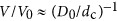 = [1/4–(8/4725) (D0/dc)–10]1/2 (Section 5a of Supplementary Note 5). These relations are represented by the black curves in Fig. 6a,b. The experimental and theoretical results were in excellent agreement without any fitting parameters. Comparison of the reduction in volume of the cylindrical and spherical microgels showed a ~10% difference in the variation of V/V0 with D0/dc.
