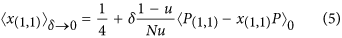 where F(1,1) and F are the total fitness of individuals with the strategy (1, 1) and of the population, respectively. Since the mean Δx(1,1) in the stationary distribution is zero, then
